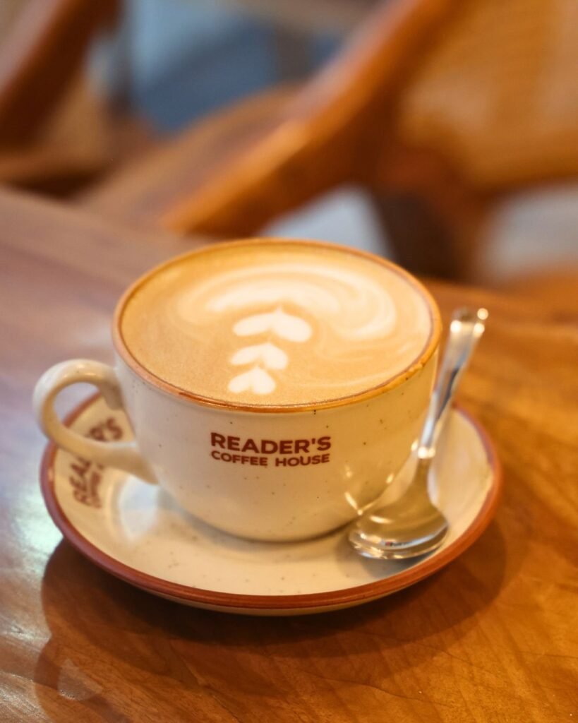As the name suggests, Reader’s Coffee House celebrates the joy of reading. It is one of those rare cafés where you can comfortably sit for hours with a book in hand, uninterrupted and unhurried. Regular visitors often describe it as their “second library” but with better coffee and a more comforting vibe.